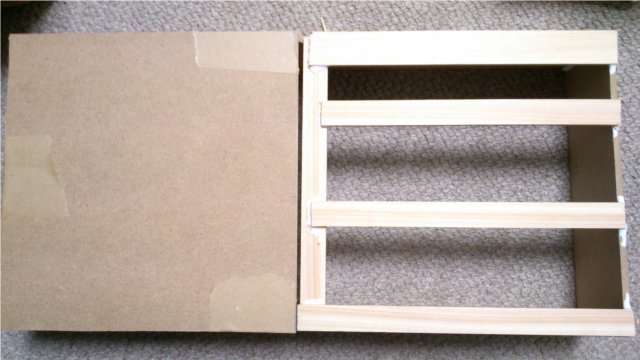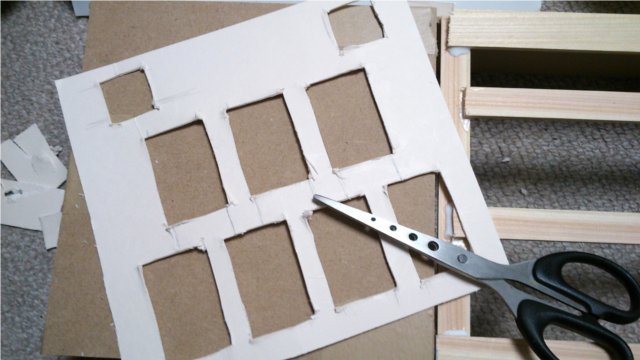 隙間を埋めるために適当に切った厚紙を挿入